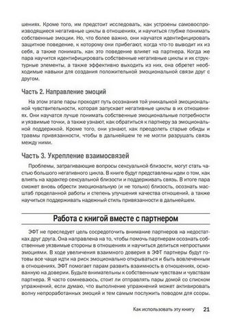 В данной рабочей тетради для пар описаны принципы ЭФТ, которые помогут развить навыки, позволяющие подходить к отношениям с любопытством, непредвзятостью и готовностью говорить, слушать и восстанавливать отношения.