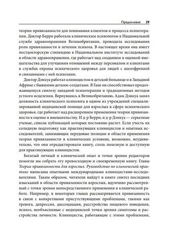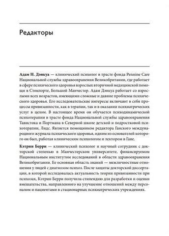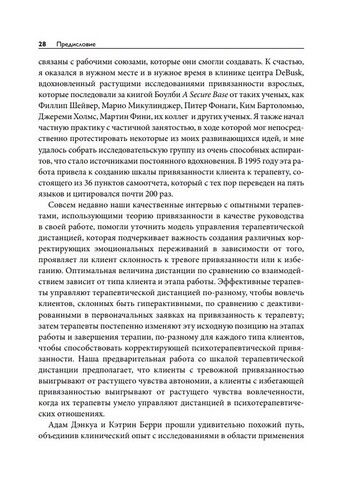 Адам Н. Дэнкуа и Кэтрин Берри предлагают широкий и практический подход к данной теме, включающий в себя исследования клинической практики, предоставления услуг в области психического здоровья и учет межкультурных аспектов. В первом разделе рассматриваются основы теории привязанности и ее применение на практике. Во втором представлены клинические проблемы и проявления, в том числе лечение депрессии, тревожных расстройств, психозов, расстройств личности и расстройств пищевого поведения.