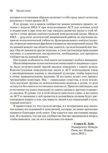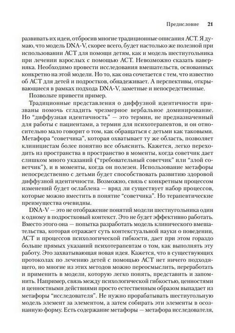 Эта книга основана на результатах современных исследований и клинических данных практикующих врачей. Предоставленная в ней информация поможет в процессе оказания помощи подросткам с разными трудностями. Уникальность этой книги в том, что в ней дана теоретическая информация об АСТ и об уникальной модели DNA-V с детальным описанием каждой составляющей модели. В книге рассматриваются примеры и концептуализация случаев из практики авторов, а также метафоры, сценарии, рабочие листы, визуальные примеры, упражнения и эксперименты для эффективного обучения навыкам. Информация, представленная в этой книге, поможет практически укрепить навыки и стать экспертом модели DNA-V, улучшить процесс самовосприятия и социального восприятия. Эта книга будет полезной всем, кто стремится помочь подросткам: родителям, практикующим врачам, клиницистам и исследователям в клинической психологии, психиатрии, социальной работе, сестринском деле и консультировании.