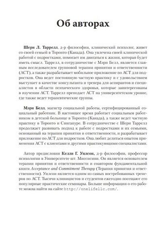 В книге изложены протоколы, основанные на доказавшей свою эффективность терапии принятия и ответственности (ACT), с помощью которых подростки смогут справиться с трудными эмоциями, определить свои ценности, обрести осознанность и жизненную энергию, а также развить позитивные отношения с друзьями и семьей.