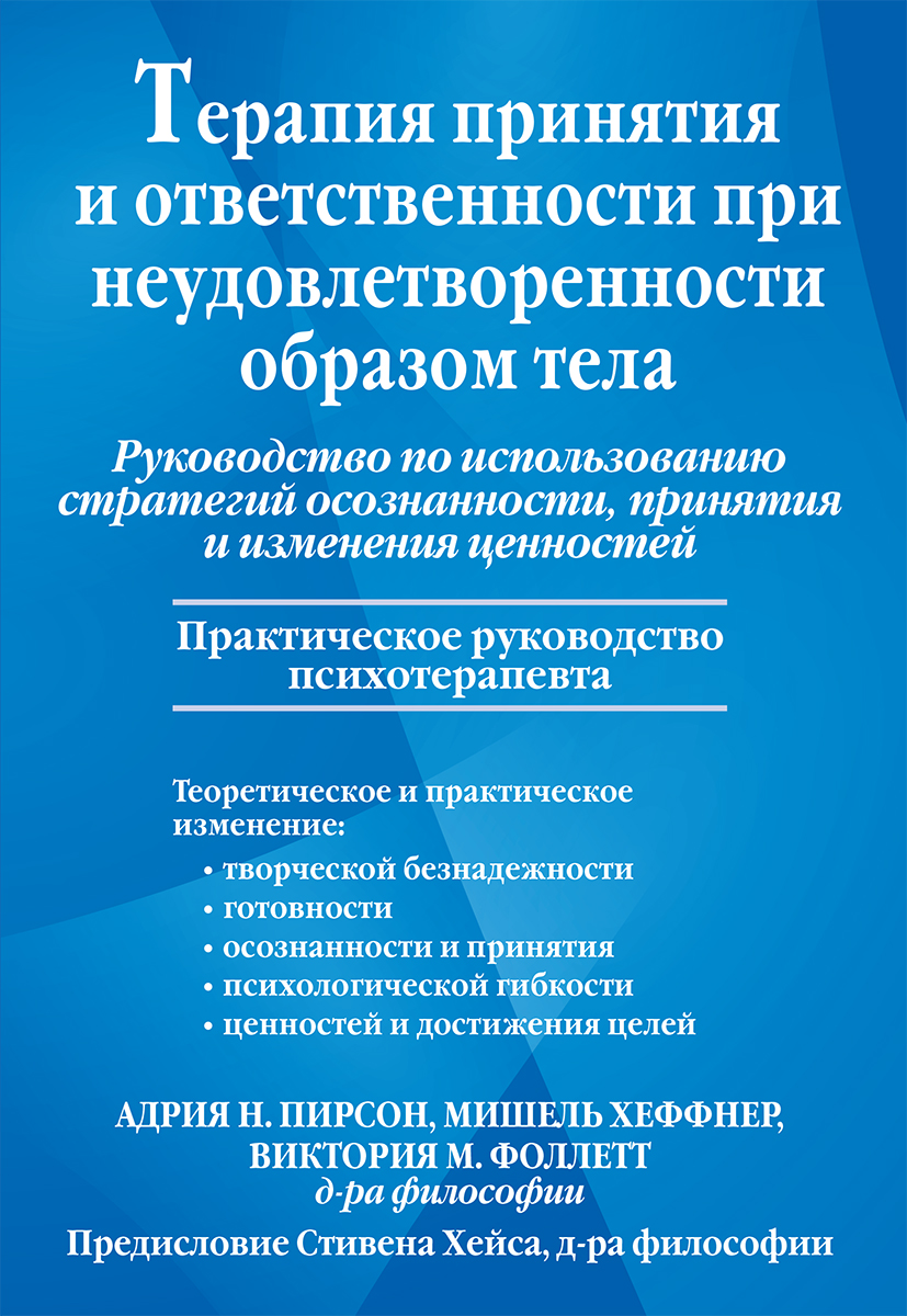 Терапия принятия и ответственности (АСТ) при неудовлетворенности образом тела — это руководство для практикующих врачей, стремящихся помочь пациентам избавиться от низкой самооценки и озабоченности собственным внешним видом. Подходы осознанности и принятия нацелены на лежащие в основе этого недуга тревогу и перфекционизм, которые удерживают многих людей в ловушке деструктивных отношений со своим телом.