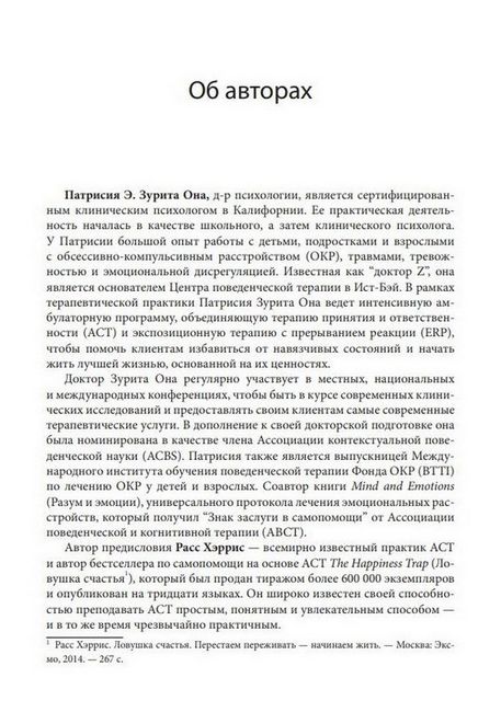 Данная книга представляет собой комплексную программу для проведения ACT с клиентами, имеющими ПРЛ. Используя предложенный 16-недельный протокол, терапевт поможет клиентам преодолеть основную движущую силу ПРЛ — избегание внутреннего опыта — и обрести психологическую гибкость, необходимую для того, чтобы гармонизировать эмоции и начать исцеление. Терапевт также найдет здесь обзор пяти важных навыков ACT, практические советы и стратегии по включению каждого из этих навыков в психотерапевтические сеансы. Читатели получат практическое представление о том, как воздействовать на главные причины ПРЛ и эмоциональной дисрегуляции для улучшения результатов терапии и помощи клиентам в повышении качества жизни, ориентированной на их приоритеты.