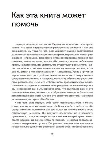 Эта книга наполнена рекомендациями и научно-обоснованными стратегиями, с помощью которых можно распознать нарциссическое насилие, понять его влияние на жизнь и на самоидентификацию, а также установить здоровые отношения в будущем.