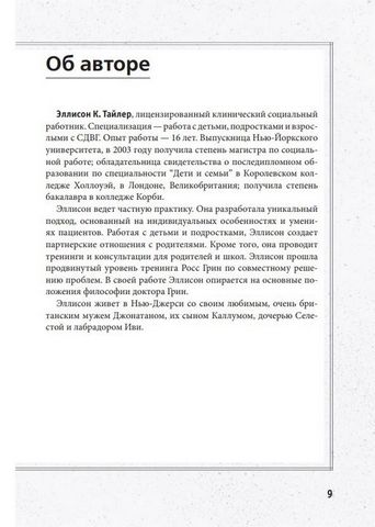 Автор книги — лицензированный клинический социальный работник. Она специализируется на работе с детьми, подростками и взрослыми с СДВГ. За 16 лет частной практики Эллисон разработала уникальный подход к терапии своих пациентов, который основывается на их личных навыках и легко подстраивается под индивидуальные потребности каждого человека.