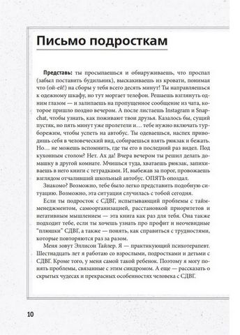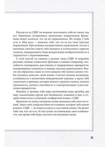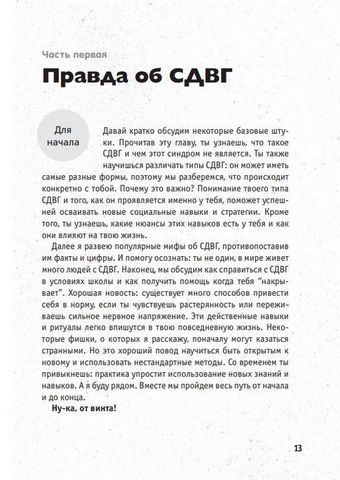 Эта книга подарит возможность понять, что такое СДВГ, как он влияет на твое тело, и как можно использовать эту особенность чтобы улучшить жизнь. Ты откроешь свои неочевидные сильные стороны и узнаешь, как применить их во время учебы, внеклассных занятий и в отношениях с друзьями. Найдешь ответы на волнующие вопросы, освоишь эффективные способы планирования и поймешь, как справляться с теми жизненными ситуациями, которые встречаются на пути.