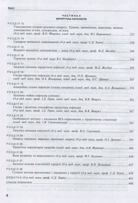У другій частині розглянуто питання хірургічної патології, хірургічної інфекції та окремих хірургічних хвороб. Численні розділи загальної хірургії, зокрема асептика, антисептика, знеболювання, переливання крові, кровотеча, шок, учення про рани, мають велике значення не лише для вивчення хірургії, а й для повноцінного засвоєння акушерства, гінекології, урології, очних хвороб, захворювань вуха, горла й носа. Окремий розділ підручника присвячено сучасним методам діагностики і лікування в хірургії. Для студентів вищих медичних навчальних закладів IV рівня акредитації.