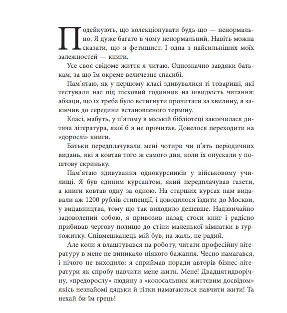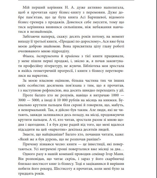 Це звід принципів і правил, перевірених багаторічною практикою успішного менеджера, його життєвий та організаторський досвід. Це прості та яскраві історії про те, як і чому треба вести справи, якщо хочеш досягти успіху. За кожною з цих глав стоять осмислені дії, чийсь біль, муки, радощі, вдалий і невдалий досвід, звільнення й лідерство, а головне — необхідний результат.
