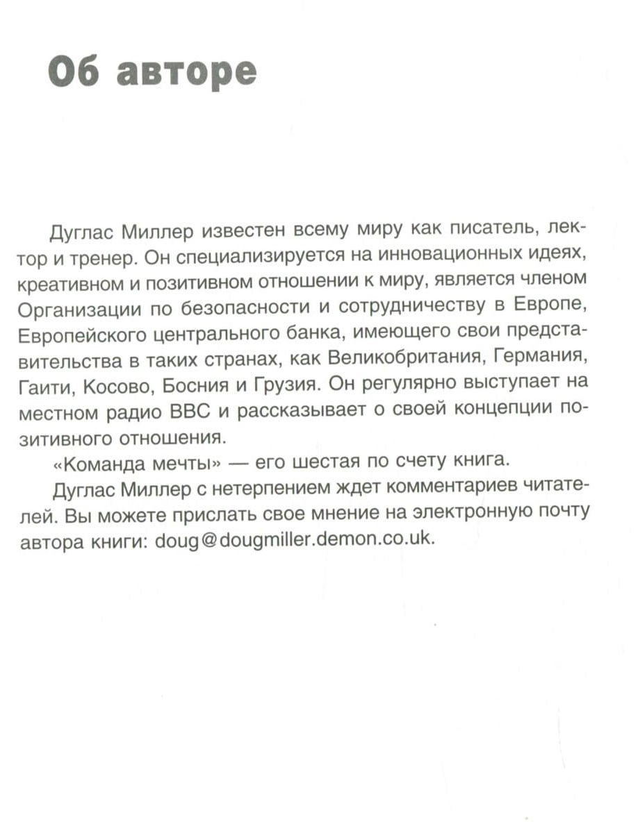 Дуглас Миллер, успешный, популярный в Европе преподаватель коучинга, специализирующийся на вопросах творческого мышления и лидерства, объясняет, какими личными качествами должен обладать сотрудник, чтобы содействовать успеху команды, и дает важный совет - "начните с себя"! Автор считает, если вы сможете наладить взаимоотношения с коллегами, то станете ценным командным "игроком" и сможете блестяще выполнять свои функции в коллективе. Он рассказывает о десяти универсальных правилах, следование которым сделает любую команду успешной, независимо от ее вида деятельности.