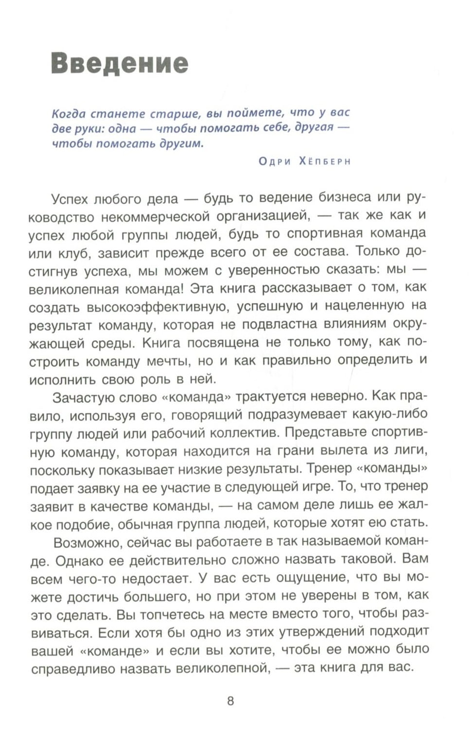 Успех любого дела - будь то ведение бизнеса или руководство организацией - зависит прежде всего от сотрудников.В этой книге рассказывается, как создать высокоэффективную, успешную и нацеленную на результат команду, а также даются советы, как правильно определить и исполнить свою роль в ней.