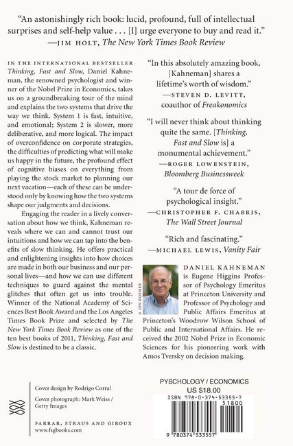 Why is there more chance we'll believe something if it's in a bold type face? Why are judges more likely to deny parole before lunch? Why do we assume a good-looking person will be more competent? The answer lies in the two ways we make choices: fast, intuitive thinking, and slow, rational thinking. This book reveals how our minds are tripped up by error and prejudice (even when we think we are being logical), and gives you practical techniques for slower, smarter thinking. It will enable to you make better decisions at work, at home, and in everything you do.