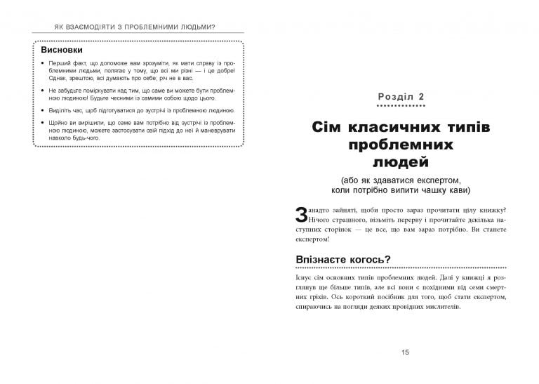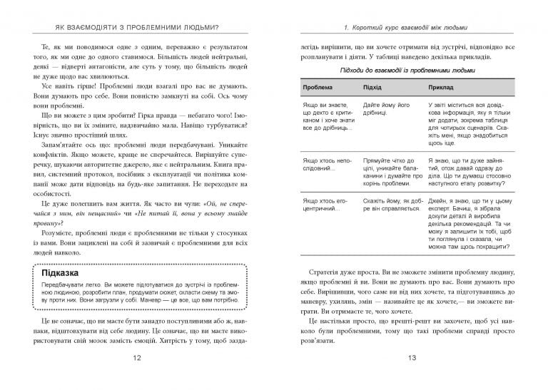 «Як взаємодіяти з проблемними людьми» — ваш справжній навігатор у світі кривдників, причеп, маніпуляторів і любителів поскаржитись. Діалоги-приклади й ефективні техніки допоможуть вам уникнути складних ситуацій і зберегти спокій під час спілкування з людьми, які доводять вас до сказу.