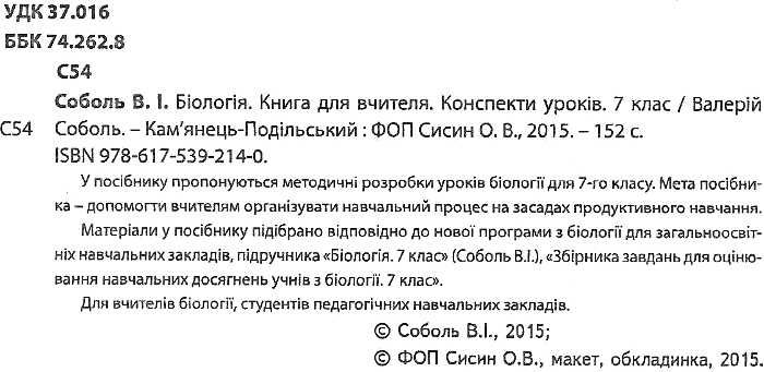 Посібник укладено відповідно до Нової програми з біології для 7 класу та є надійним помічником учителя у щоденній підготовці до занять. У ньому подано методично продумані розробки уроків, створені на основі підручника В. Соболь.
