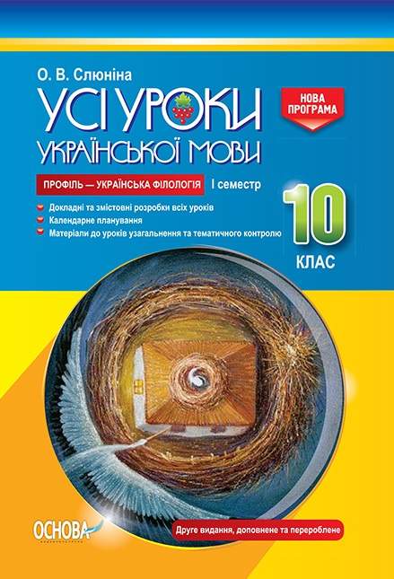 Усі уроки української мови 10 клас І семестр Програма 2018 Профіль українська філологія Авт: Слюніна О. Вид: Основа 19931