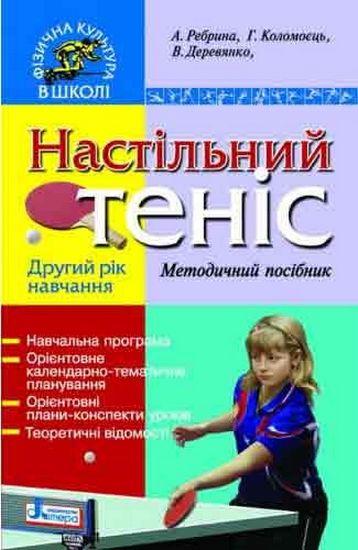 Фізична культура в школі Теніс настільний Методичний посібник Другий рік навчання Літера. У навчальному посібнику подано програму варіативного модуля «Настільний теніс», теоретичні відомості з настільного тенісу (2 рік навчання), розроблено орієнтовне календарно-тематичне планування та орієнтовні конспекти уроків (2 рік навчання).