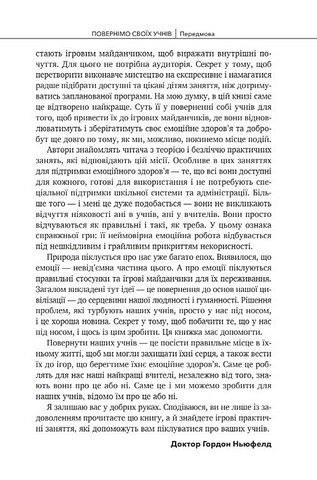 \nНа ці запитання відкрито та вишукано просто відповідають у своїй книжці «Повернімо своїх учнів» Ганна Біч, відома педагогиня і фахівчиня у галузі емоційного здоров’я, і Тамара Ньюфелд Страйжек, клінічна консультантка й академічна деканка відомого Інституту Ньюфелда. Їхній підхід — це більше ніж просто спосіб запобігти «поганій» поведінці учнів. Головна мета авторок — допомогти школам створити класи, де панують емпатія, інклюзія та любов. У цій книжці зібрані поради та стратегії для відновлення стосунків з учнями. «Повернімо своїх учнів» — чудовий посібник для вчителів, які не лише хочуть подолати щоденні труднощі, але й бажають знову відчути своє покликання.