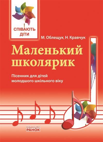Співають діти Маленький школярик Пісенник для дітей молодшого шкільного віку Музика Ранок. Дане видання містить авторські пісні для розучування і виконання з дітьми молодшого шкільного віку. Пропоновані твори про маму і першу вчительку, про любов до школи і рідної землі, про звірят і пташок можна використовувати як на уроці музики, так і під час різноманітних шкільних свят.