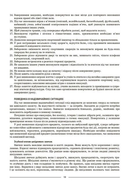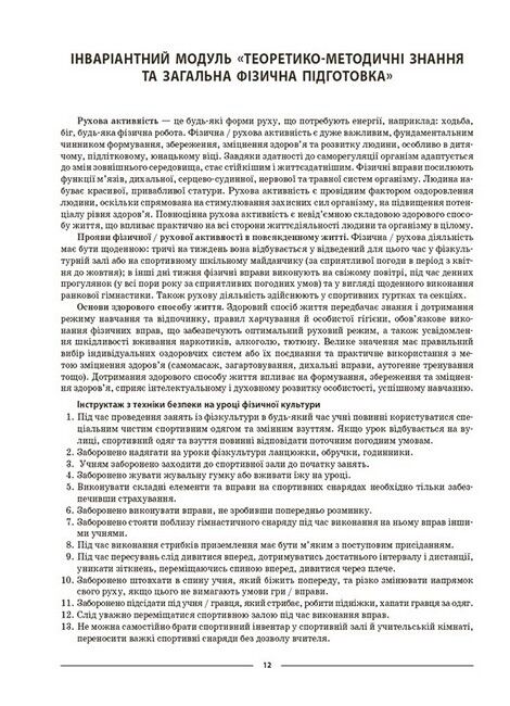 Навчально-методичний посібник пропонує змістовну інваріантну частину, а також розробки орієнтовних планів-конспектів уроків за чотирма варіативними модулями на уроці: бадмінтон, баскетбол, баскетбол 3 х 3, волейбол, гандбол, гімнастика, доджбол, дитяча легка атлетика, теніс настільний, панна, петанк, рухливі ігри, футбол, футзал, алтимат фризбі, шахи (16 модулів) та орієнтовне календарно-тематичне планування за кожним модулем. Конспекти уроків укладено відповідно до ухваленої МОНУ модельної навчальної програми: «Фізична культура. 5—6 класи» для закладів загальної середньої освіти (автори: О. С. Педан, Г. А. Коломоєць, А. А. Боляк, А. А. Ребрина, В. В. Стеценко, О. І. Остапенко, О. М. Лакіза, В. М. Косик та інші) рекомендованої Міністерством освіти і науки України», наказ Міністерства освіти і науки України від 17.08.2022 року № 752. Учителеві стануть у пригоді наведені види та критерії оцінювання освітніх досягнень учнів, алгоритми діяльності вчителя, інтерактивні засоби, форми, прийоми, методи навчання та контролю фізичного розвитку і підготовленості учнів.