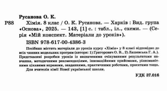 Мій конспект Матеріали до уроків Хімія 8 клас НУШ Авт: О.К. Русанова Вид-во: Основа 110996