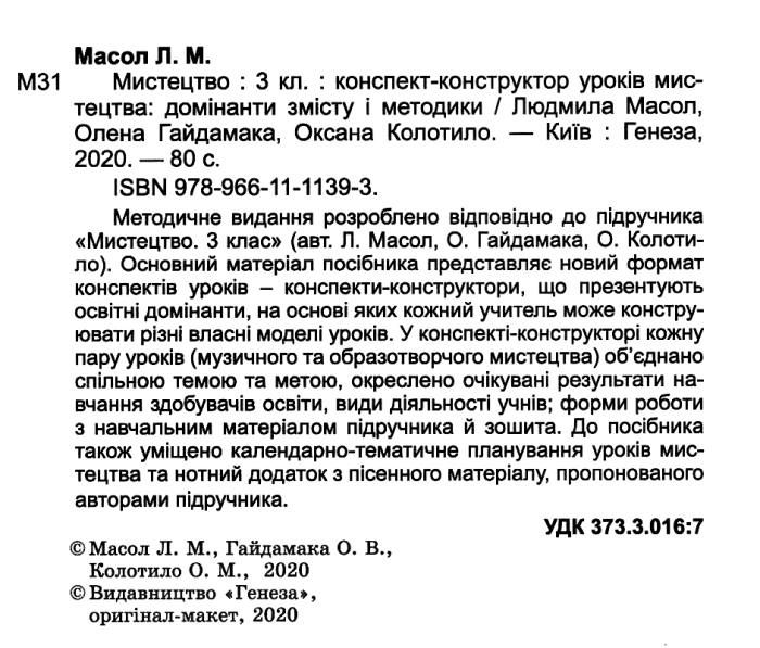 Мистецтво 3 клас НУШ Конспект-конструктор уроків мистецтва Масол Л. Генеза