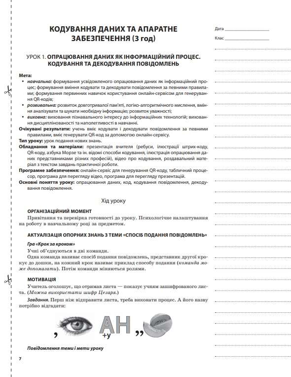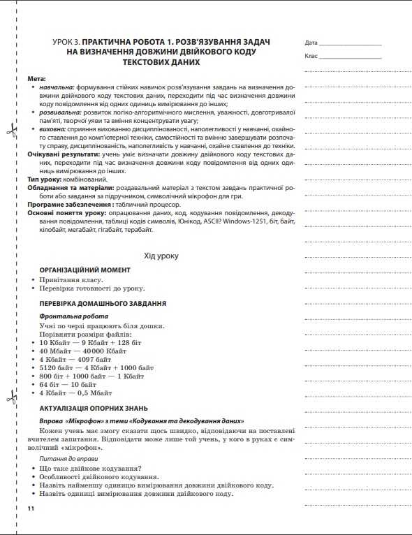 Така форма допоможе вчителю зекономити час на підготовку до заняття та полегшить звітування. Передбачено місце для записів учителя.