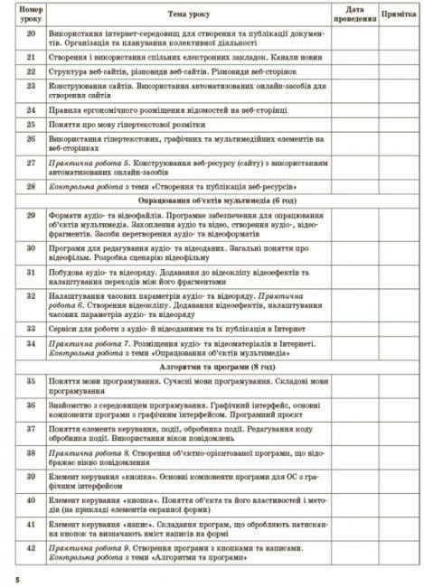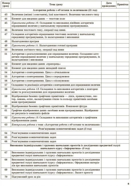 Містить методично грамотно визначені навчальну мету й тип уроку, перелік необхідного обладнання, стислий зміст етапів уроку залежно від його типу.