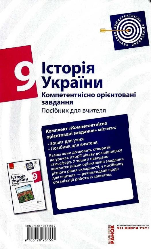Посібник для вчителя Історія України Компетентнісно орієнтовані завдання 9 клас Гриценко А. Ранок 37357