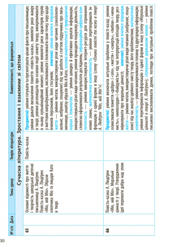 Календарно-тематичний план Зарубіжна література 6 клас Авт: Столій І.Л. Полулях Н.С. Вид-во: Ранок 37464
