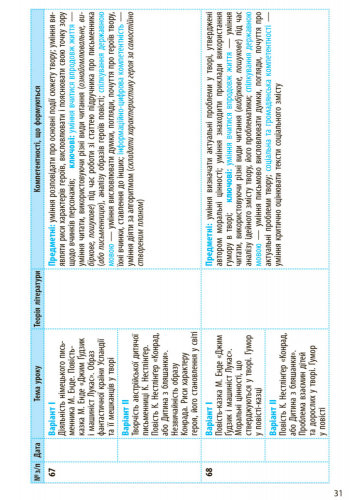 Зарубіжна література 6 клас Календарно-тематичний план Столій І. Ранок