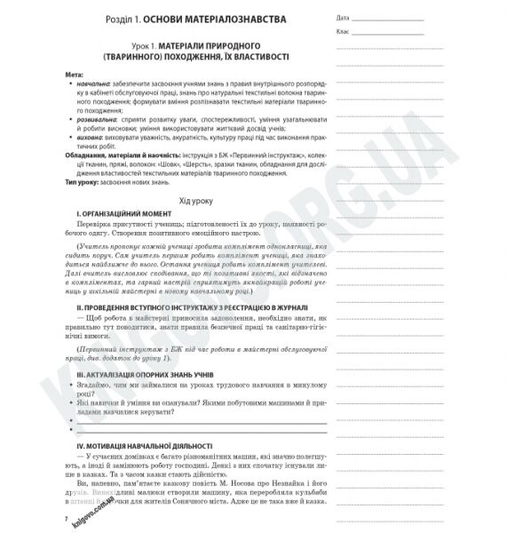 Мій конспект Трудове навчання 7 клас Нова програма Дівчата Блок 2 Авт: Хатько Л.І. Вид-во: Основа 13092