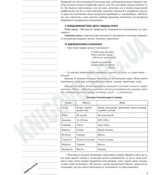 Поурочні конспекти: у кожному уроці визначено його мету, перелік необхідного обладнання й матеріалів, тип уроку та його структуру;