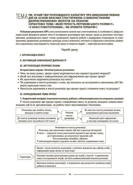 структуровані конспекти занять, які містять усі необхідні етапи уроку — від мотивації навчальної діяльності до підбиття підсумків;