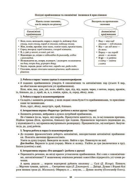 зразки вправ, інтерактивних завдань, мовних ігор, тренувальних та творчих робіт, що сприяють розвитку мовлення, критичного мислення й грамотності учнів;