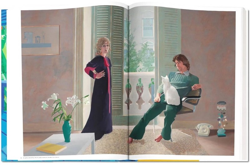The book’s sumptuous portfolio is supplemented by an illustrated chronology of more than 600 pages, contextualizing Hockney’s art with drawings, graphic work, portrait photos, and text based on the artist’s own writings as well as contemporary reviews. A Bigger Book is presented on a Marc Newson bookstand.