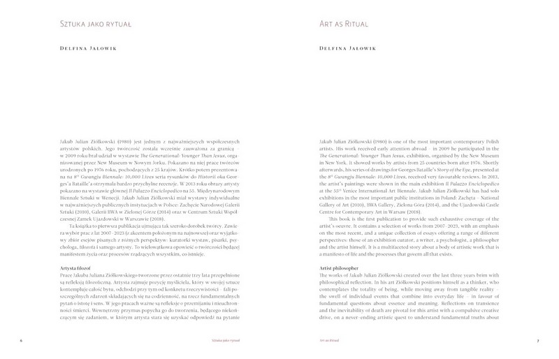 Яскраві роботи Якуба Юліана Зьольковського химерні та привабливі. У своєму дикому, сюрреалістичному космосі людей-мутантів, органічних форм і систем кровообігу польський художник змішує культурні символи, декоративні та фантастичні. Зіставляючи духовне та мікроскопічне, він створює всесвіт, щетинистий деталями та калейдоскопом посилань—з Hiernoymos Bosch видінь раю та пекла та гротескних алегорій Джеймса Енсора Філіпу Гастон Єт, його картини показують дуже особистий світ, який населений повторюваний склад персонажів. Ця публікація є першим вичерпним оглядом його творчості з 2005 року по теперішній час, що дає уявлення про його мистецьку практику в різних ЗМІ: від живопису до скульптури, кераміки та малювання. До книги увійшли есе Ольги Токарчук, лауреата Нобелівської премії з літератури, та Сесілії Алемані, куратора 59. Венеційська бієнале, глибинне інтерв'ю з художником, а також тексти філософа Каєтана Млинарського та психолога Бартломєя Доброчинського.