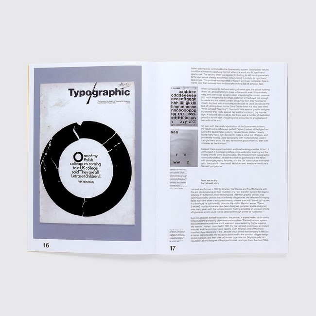 Edition limited to 2000 Four years in the making. The DIY Typography Revolution is the first comprehensive history of Letraset, the rubdown lettering system that revolutionised typographic expression. The book tells the Letraset story from its early days as a difficult-to-use wet system, to its glory years as the first truly democratic alternative to professional typesetting. The book also looks at Letraset’s present-day revival amongst a new set of admirers who recognise the typographic excellence of the system’s typefaces. The book comes with a gatefold Letraset timeline. It has an introduction by Malcolm Garrett, and features in-depth interviews with Mr Bingo, Erik Brandt, Aaron Marcus, David Quay, Dan Rhatigan, Freda Sack, Andy Stevens and Jon Wozencroft. Essays by Colin Brignall, Dave Farey and Mike Daines – all key members of the Letraset team – provide expert insight into the rise of Letraset as a typographic and commercial powerhouse. A central essay by Adrian Shaughnessy examines the typographic and cultural impact of the system. The book’s design is by the Spin team of Tony Brook and Claudia Klat. It uses many rare specimens from Letraset’s past – catalogues, press ads, mailers, storage units, and of course, sheets of classic Letraset typefaces. Specifications 220?320 mm 312 Four colour litho Four colour litho plus Pantone Special Gatefold Letraset timeline