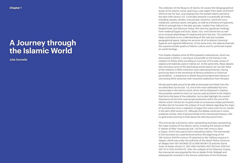 Опублікована разом із відкриттям музейних галерей, ця книга блискуче передає якість і значення колекції Музею ісламського мистецтва, представляючи вражаючі зображення об’єктів разом із новими дослідженнями та відкриттями команди кураторів музею. Музей ісламського мистецтва: Колекція також включає тридцять сім спеціально замовлених есе вчених ісламського мистецтва.