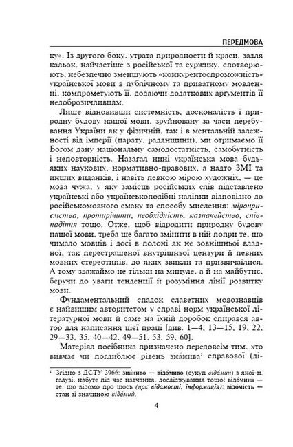 Посібник осягає основи культури спілкування, види й жанри публічних виступів. Подано також головні правописні норми та правила, морфеміку й морфологію. Закцентовано увагу на особливостях уживання іменних і службових частин мови в офіційно-діловому стилі, а також на складних випадках керування й перекладу науково-технічної, економічної та иншої термінології. У низці виносок із посилками вперше пояснено значини призабутих чи «зрепресованих», але природних для нашої мови термінних слів і словосполук, унормованих у ДСТУ 3966:2009 і чинному правописі.