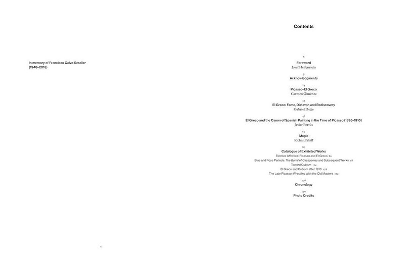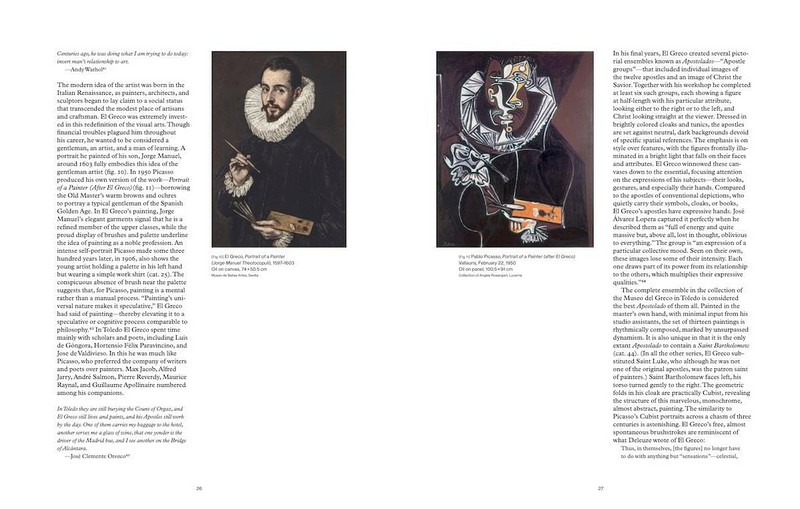 В юності Пабло Пікассо (1881-1973) часто відвідував музей Прадо, відкинувши формальну освіту на користь самостійного вивчення робіт старих майстрів. Ель Греко (1541-1614) особливо привернув його увагу, і його захоплення незабаром переросло в натхнення. Характерні риси стилю Ель Греко були відроджені трепетною, але водночас і підривною рукою Пікассо. Під час Блакитного періоду (1901-04) художник увібрав у себе схильність Ель Греко до витягнутих фігур, стриманого тла та відтінку містицизму й маньєризму; наприкінці своєї кар'єри він більш виразно втілив своє захоплення іспанським Золотим віком, нагадуючи про палітру теплих коричневих та охристих відтінків Ель Греко. Пікассо сприяв відродженню інтересу до Ель Греко, чия творчість, визнана його сучасниками у 16 столітті за беззаперечну винахідливість, була майже забута після його смерті, аж до початку 1900-х років. Вступивши в діалог зі своїм попередником, Пікассо встановив точку історичної тяглості у своїй творчості - заземлюючу присутність посеред своїх радикальних формальних інтервенцій.