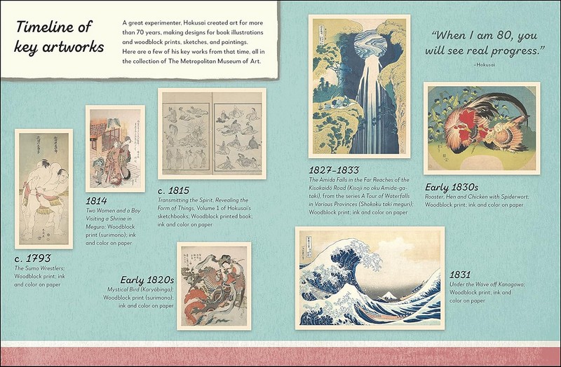 Have you ever wondered exactly what your favorite artists were looking at to make them draw, sculpt, or paint the way they did? In this charming illustrated series of books to keep and collect, created in full collaboration with The Metropolitan Museum of Art, you can see what they saw, and be inspired to create your own artworks, too. In What the Artist Saw: Hokusai, meet groundbreaking Japanese artist Hokusai. Step into his life and learn what led him to create more than 30,000 works of art, including his famous woodcut views of The Great Wave off Kanagawa and Mount Fuji. Discover how he planned to live to 110 and even produced the first ever pieces of manga! Have a go at making your own printed artworks.