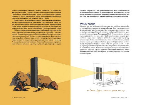 Як з’явилося і еволюціонувало кіно? Як воно відзеркалює наші страхи і мрії, а також впливає на масову свідомість? Як працює сучасна кіноіндустрія? І які професії необхідні у кіновиробництві? Про усе це та багато іншого розповість «Твоя книга про кіно» від Ольги Бірзул, кураторки кінопрограм і культурної менеджерки. Та ще й порекомендує цікаві фільми до перегляду й розкаже, як створити власні колекції улюблених стрічок. Ця книжка точно прокачає ваші глядацькі навички та емоційний інтелект, надихне довідатися про кіномистецтво більше!