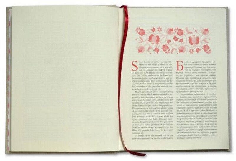 Це видання є першим українським перекладом англомовної праці видатного українського науковця та музейника Миколи Федотовича Біляшівского (1867–1926), що вийшла в Лондоні 1912 року у видавництві часопису «The Studio». Книгу доповнено унікальними світлинами етнографічного характеру кін. XIX – поч. ХХ ст. з колекції Національного художнього музею України (ДАФ НХМУ, ф. 33).