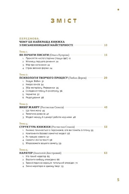 Хочете розкрити свій творчий потенціал у світі літератури? У цьому унікальному посібнику зібрано досвід 20 провідних українських літературознавців, авторів та видавців, які щедро діляться своїми знаннями та інсайтами. Ви дізнаєтесь, з чого почати писати книжку, як створити незабутніх героїв, побудувати сильний сюжет та віднайти власний стиль. Видання містить 30 тем і стільки ж творчих завдань, що допоможуть вам удосконалити авторську майстерність і покращити письмову мову. Це практичний курс, який підходить як для початківців, так і для тих, хто вже пише тексти — нехудожні, художні чи комерційні. Ви отримаєте чіткі рекомендації й інструменти, що допоможуть вам досягти високих результатів у літературі. Це ідеальний путівник для тих, хто прагне створювати якісні, професійно написані тексти.