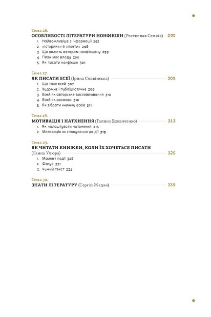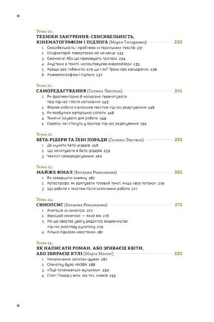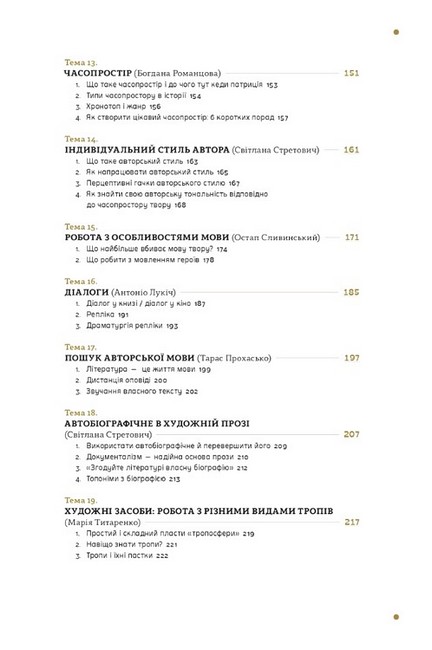 - Вміщує безліч тем, творчих завдань від 20 авторів, серед яких — відомі літератори й видавці.