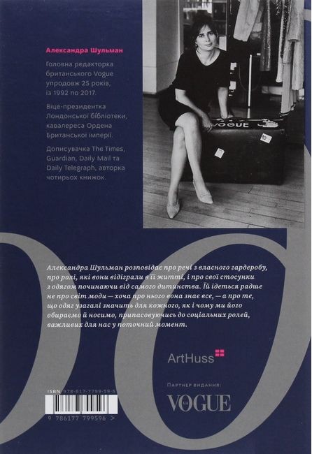 Александра Шульман, редакторка британського Vogue упродовж 25 років (1992–2017), розповідає про 556 речей із власного гардеробу, про ролі, які ці речі відіграли в її житті, і про свої стосунки з одягом починаючи від самого дитинства. Їй ідеться радше не про світ моди — хоча про нього вона знає все, — а про те, що одяг узагалі значить для кожного, як і чому ми його обираємо й носимо, припасовуючись до соціальних ролей, важливих для нас у поточний момент.