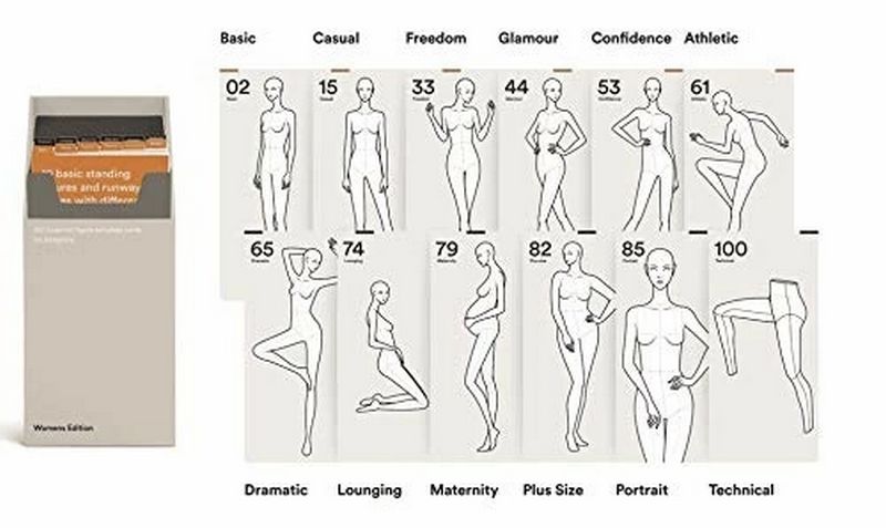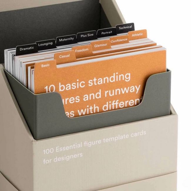 Are you looking for the perfect fashion templates to capture your creativity Fashionary have seen the stiff, impractical fashion templates available, and come up with a modern alternative. Their set of 100 pose cards are accurately proportioned, with practical poses that cover basic style to couture to sportswear even including a built-in filing system to accommodate the busy fashion professional. The guide book includes detailed step by step demonstrations of fashion sketching, beautifully drawn by fashion illustrator Connie Lim.