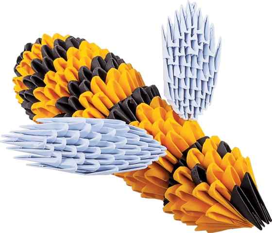 Модульне орігамі Бджілка 430 модулів OM-6085 Бумагія. Модульне 3D орігамі це цікавий спосіб збирання об'ємно фігур, для якого використовуються модулі, складені з паперу різних кольорів розміром 1/25 (59,4 мм х 42 мм) і щільністю 80 г / м2 в техніці класичного орігамі.