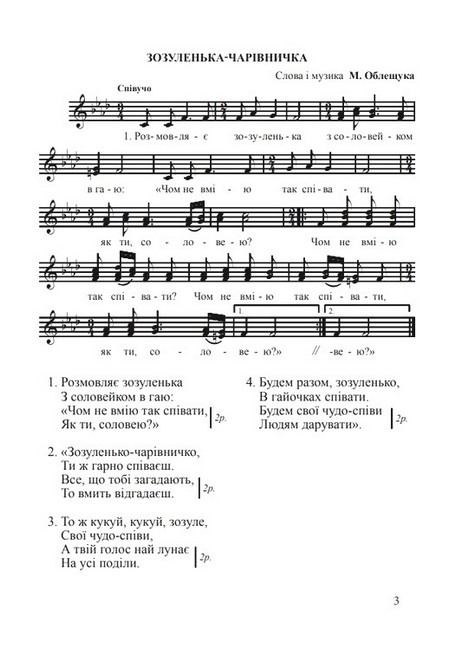 Зозуленька-чарівничка. Слова і музика М. Облещука