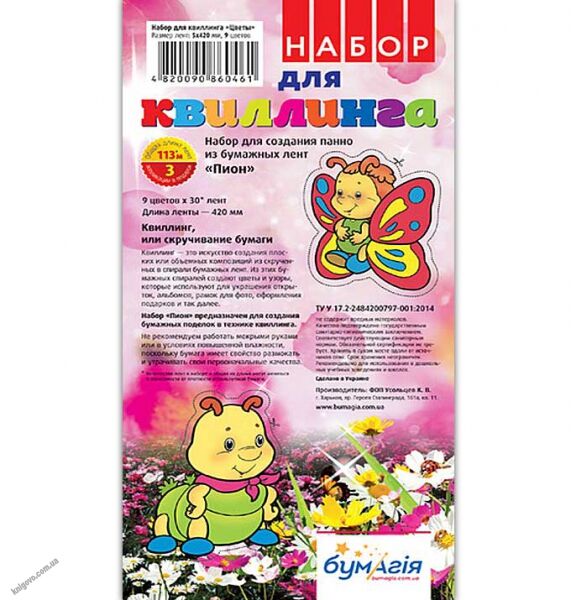 Набор для квиллинга Пион 3 мм Бумагия. Набор бумажных лент девяти цветов, по 30 лент в каждом цвете. Длина ленты 420 мм, ширина 3 мм. Набор предназначен для создания работ в технике квиллинга. Квиллинг искусство изготовления плоских или объемных композиций из скрученных в спиральные элементы длинных и узких полосок (лент) разноцветной бумаги.