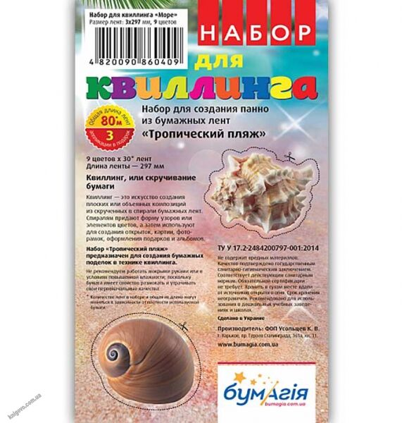 Набор для квиллинга Тропический пляж ширина лент 5 мм Бумагия. Длина ленты 297 мм, ширина 5 мм. Материал ленты высококачественная целлюлозная бумага, произведенная в Австрии. Набор предназначен для создания объемных декоративных элементов в технике квиллинга.