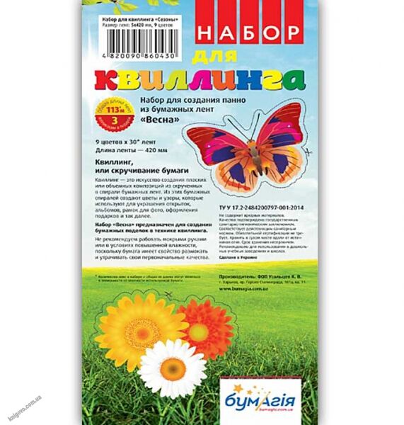 Набор для квиллинга Весна 3 мм. Набор бумажных лент девяти цветов, по 30 лент в каждом цвете. Длина ленты 420 мм, ширина 3 мм. Набор предназначен для создания работ в технике квиллинга.